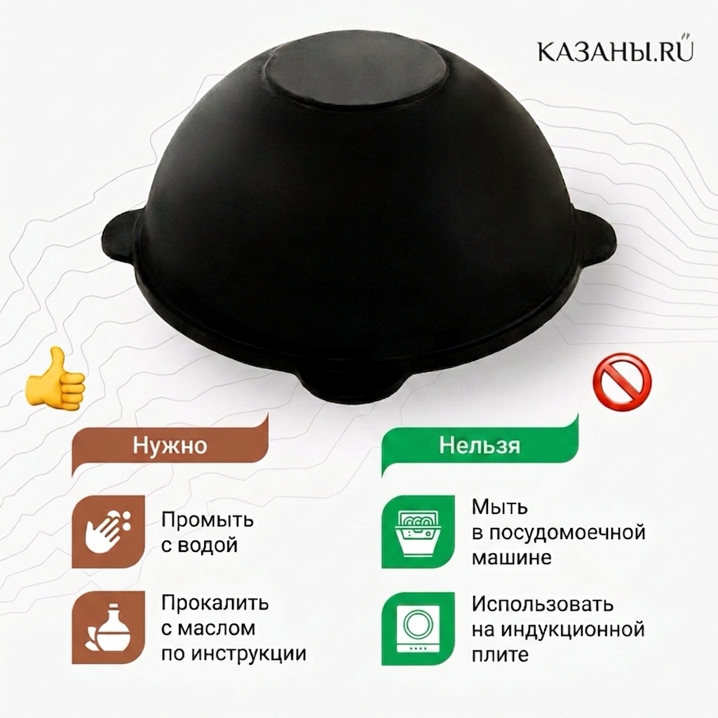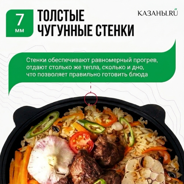 Настоящий чугунный казан из Узбекистана, имеющий утолщённое и прокаленное плоское дно. Такая конструкция делает казан универсальным: посуда подходит как для готовки на открытом огне на улице, так и дома на обычной газовой или электрической плите, а также в духовке. Отлит из гладко шлифованного экологичного чугуна, который имеет особую пористую конструкцию. Именно наличие таких микропор, напитывающихся жиром в процессе готовки, обеспечивает казану естественные антипригарные свойства, которыми издавна славится качественная чугунная посуда.