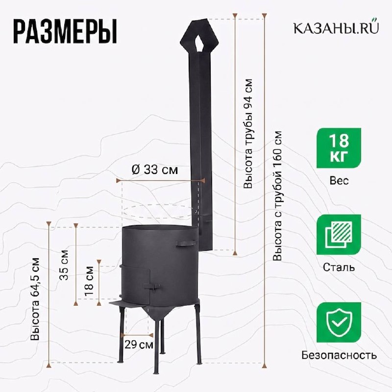 Любите готовить блюда в казане? Сделать процесс приготовления пищи под открытым воздухом максимально быстрым и комфортным поможет очаг на 8-10 литров с трубой, которая обеспечивает централизованный вывод дыма.