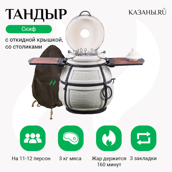 - Тандыр "Скиф" с откидной крышкой и двумя боковыми столиками